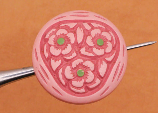 Flower Trio Pink Green Buffed Celluloid Vintage Button 22mm