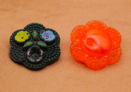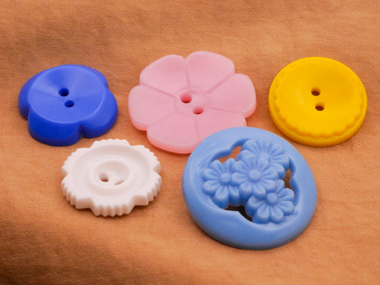 Flowers Vintage Blue Pink Yellow Plastic Set of Five Buttons 21-28mm