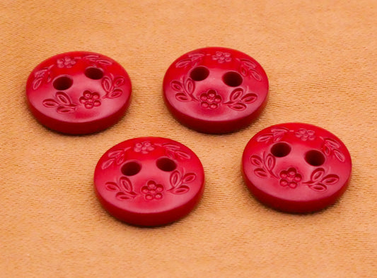 Flower Wreath Vintage Wine Red Plastic Set of Four Buttons 11mm