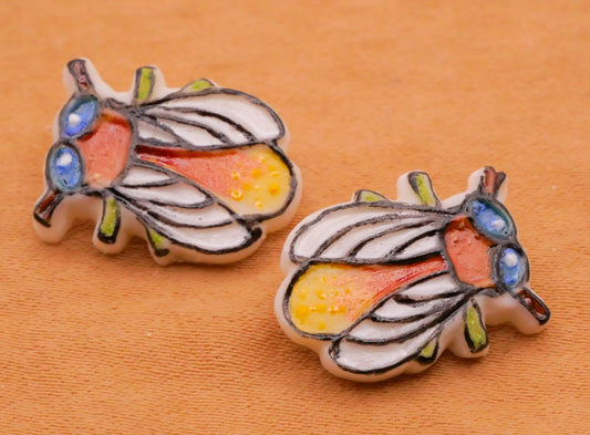 Fly Detailed Hand-Painted Porcelain Ceramic Button 13x17mm