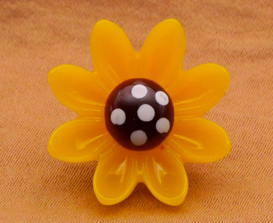 Flower Yellow Polka Dot Center Plastic Pair of Buttons 19mm