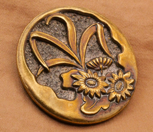 Flowers Floral Art Nouveau Crushed Stone Bronze Metal Large Button 38mm