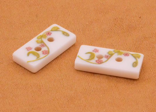 Flower Vines Rectangular Plastic Pair of Buttons 7x15mm