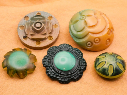 Flower Turquoise Blue Green Celluloid Early Plastic Button Various 19-30mm