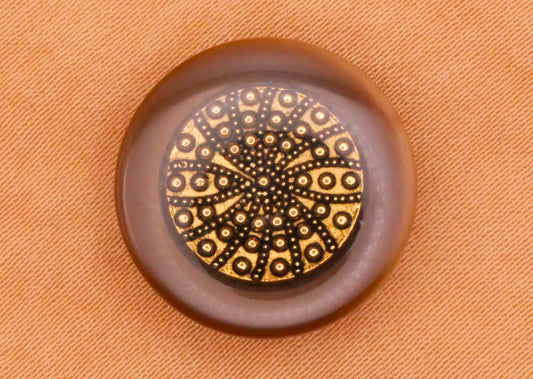 Gold Spiral Rays Design Under Plastic Vintage Brown Button 17mm