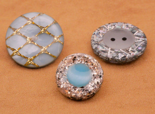Glitter Shell Plastic Vintage Button Various 11-13mm
