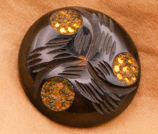 Gold Sand Inlay Carved Semi-Translucent Vintage Plastic Button 28mm