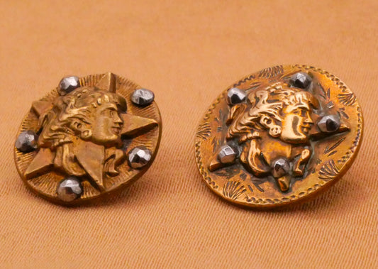 Goddess Astraea Asteria Portrait Star Steel-Cuts Brass Metal Button Various 14-16mm