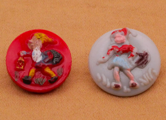 Gnome or Little Red Riding Hood Hand-Painted Vintage Button Various 13-15mm