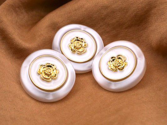 Gold Rose Pearlized Metallized Plastic Button 22mm