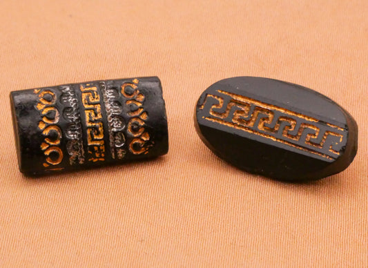 Greek Key Gold Black Antique Glass Button Various 10-20mm