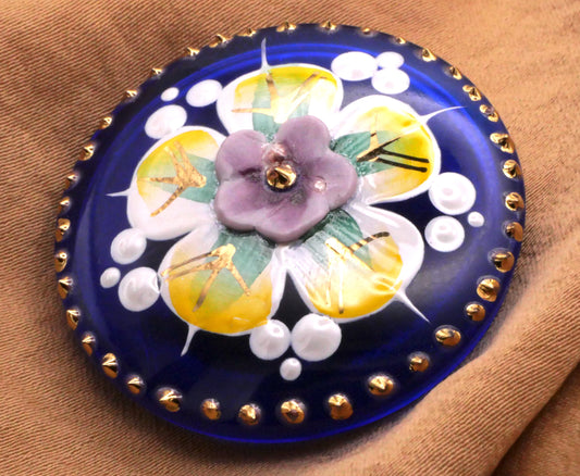 Hand-Painted Flower Blue Czech Glass Large Button 36mm