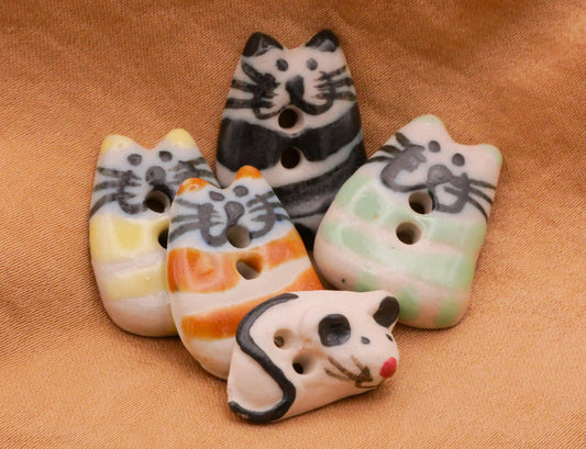 Happy Kitty Cat Sitting Mouse Ceramic Hand-Painted Button Various 11-22mm