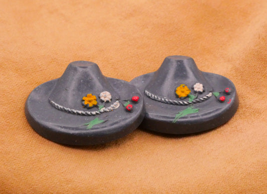 Hat Tyrolean Alpine Blue Grey Flower Cherries Vintage Italian Plastic Button 19x24mm