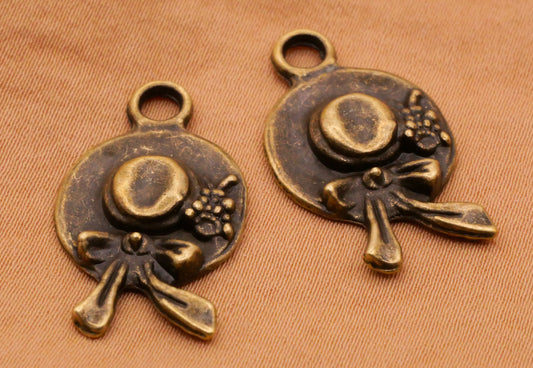 Hat Bonnet Bow Bronze Metal Pair of Charms Embellishments 15x27mm