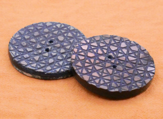 Hatch Design Blue Dyed Carved Mother of Pearl Button 23mm