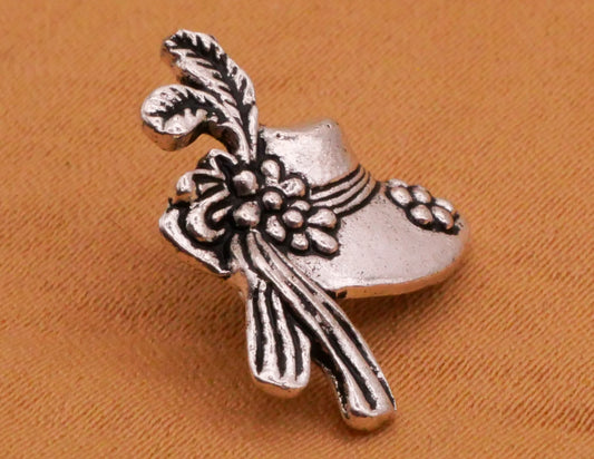 Hat Bonnet Flower Feather Silver Metal Button 14x18mm