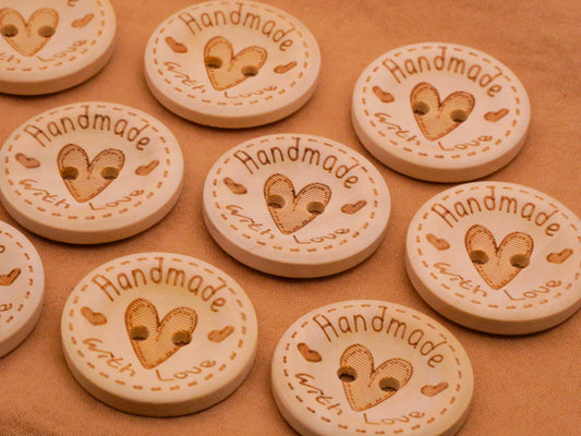 Handmade With Love Heart Wood Set of Ten Buttons 25mm