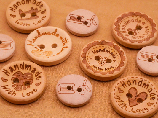 Handmade With Love Sewing Themed Assorted Set of Ten Buttons 15-20mm