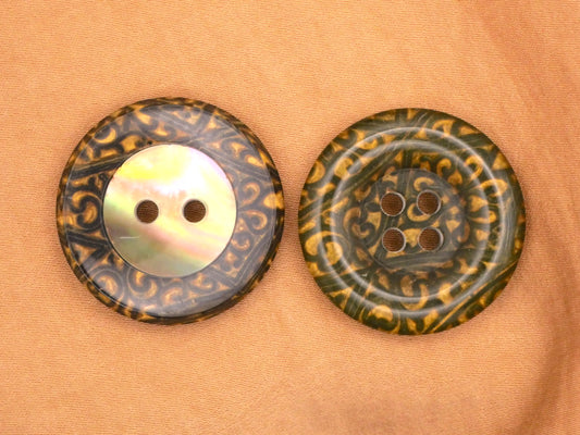 Ironwork Look Design Under Plastic Button Mother of Pearl Various 30mm