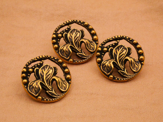 Iris Flower Dot Rim Bronze Metal Button 19mm