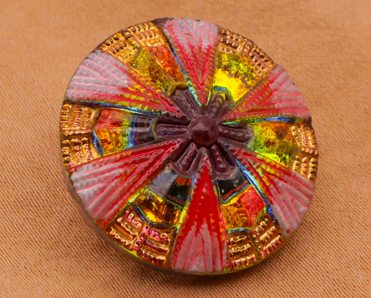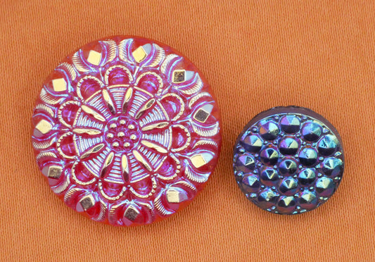 Iridescent Steel Cut Look Vintage Glass Pink Blue Button Various 13-23mm