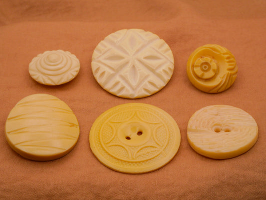Ivory Carved Look Celluloid Early Plastic Button Various 21-35mm