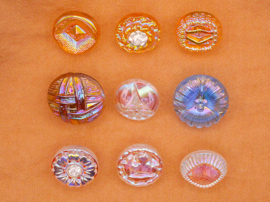 Iridescent Transparent Vintage Glass Button Various 11-14mm