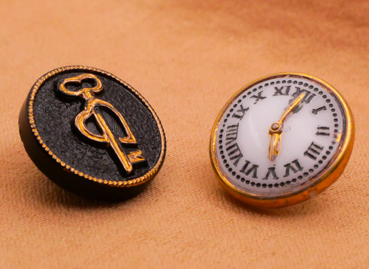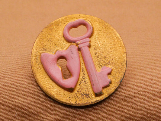 Key Lock Brass Gold Pink Vintage Button 23mm