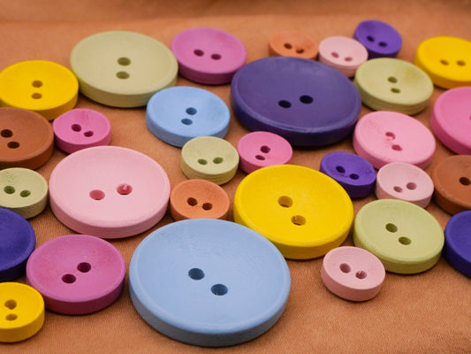 Jewel Colors Wood Set of Thirty-Five Buttons 10-25mm