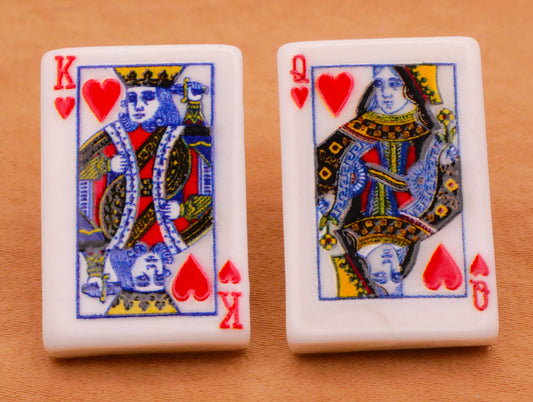 King Queen Hearts Playing Card Plastic Pair of Buttons 17x27mm