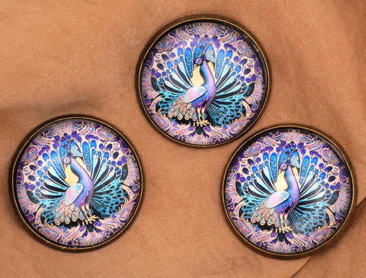 Jewel-Toned Peacock Glass Dome Button 28mm
