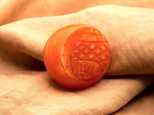 Bakelite Carved Crescent Moon Button Marbled Butterscotch 28mm