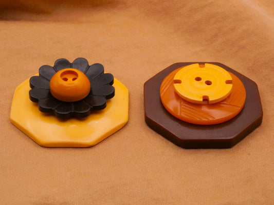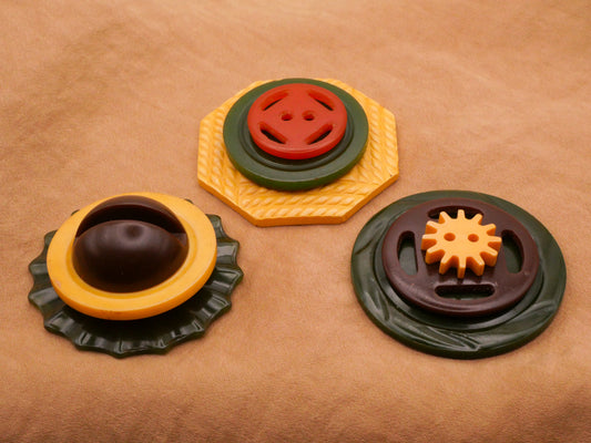 Bakelite Fall Colors Hexagon Flower Early Plastic Set of Three Button Stack Various 13-37mm