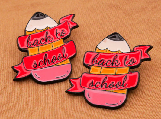 Back to School Verbal Pencil Banner Enamel Metal Button 29x30mm