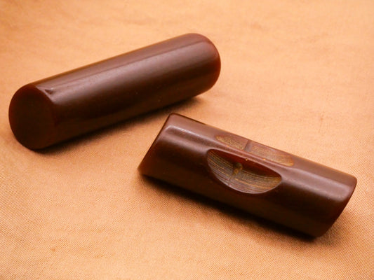 Bakelite Chocolate Brown Vintage Early Plastic Pair of Toggle Buttons 13x43mm