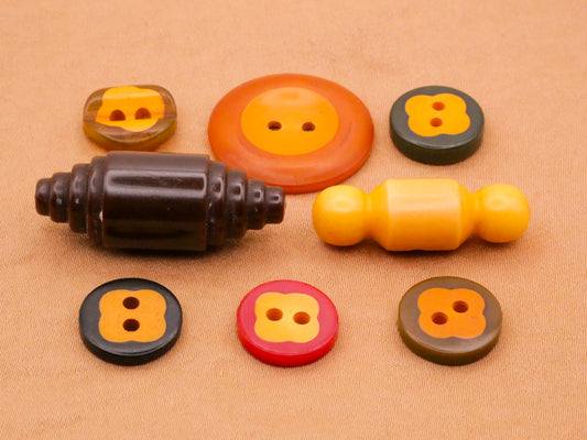 Bakelite Butterscotch Deco Sew-Thru Early Plastic Button Various 22-27mm