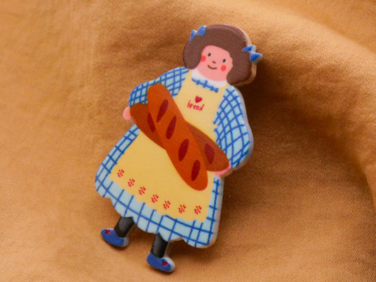 Baker Girl Blue Dress Loaves of Bread Large Plastic Button 30x49mm