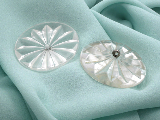 Lucite Sun Star Carved Smokey Mother of Pearl Large Plastic Button 37mm