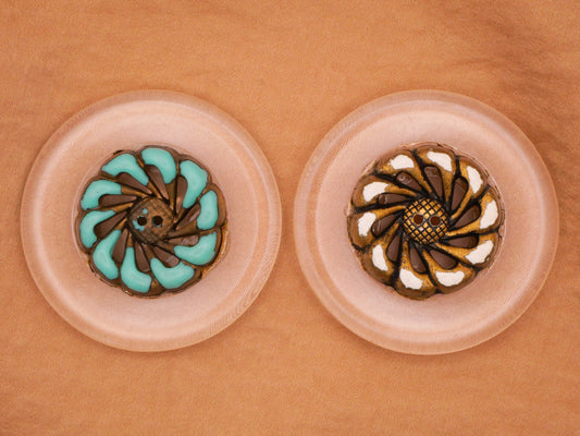Lucite Design Under Plastic Pearlized Mandala Flower Center Large Button 45mm