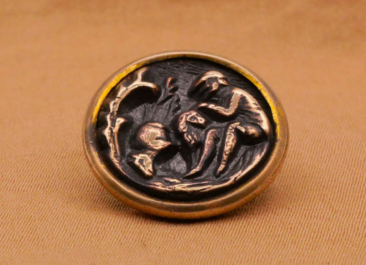 Man and Dog Victorian Brass Metal Picture Button 18mm