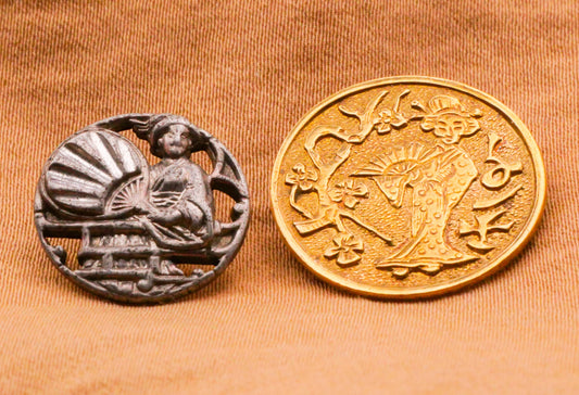 Madame Chrysanthème Asian Woman Fan Antique Metal Button Various 15-20mm