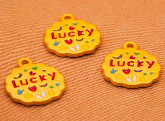 Lucky Charm Gold Metal Verbal Enamel Set of Three Charms Embellishments 14x16mm