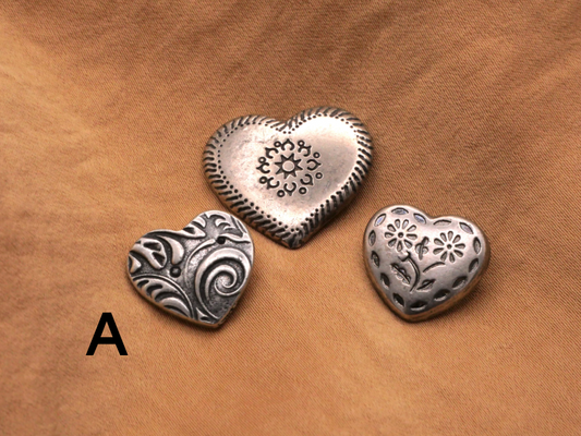 Metal Hearts Set of Three Assorted Buttons Danforth Pewter 14x21mm