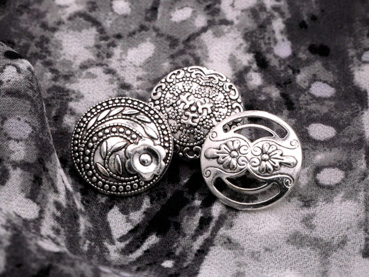 Metal Scrolls Flowers Cutout Designs Set of Five Buttons 17mm