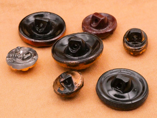 Metallic Gold Copper Bronze Vintage Glass Set of Seven Buttons 9-19mm