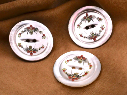 Mother of Pearl Hand-Painted Floral Garland Sew-Thru Buttons 28mm