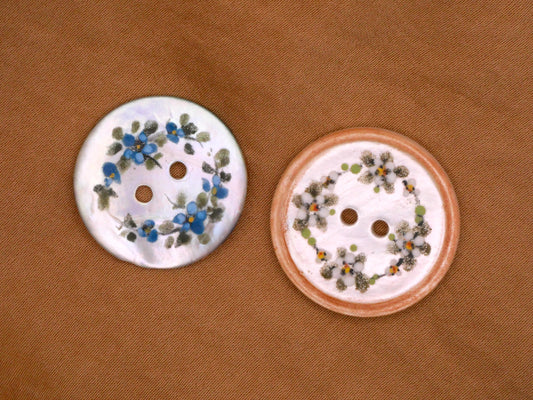 Mother of Pearl Hand-Painted Flower Wreath Sew-Thru Button Various 23-25mm