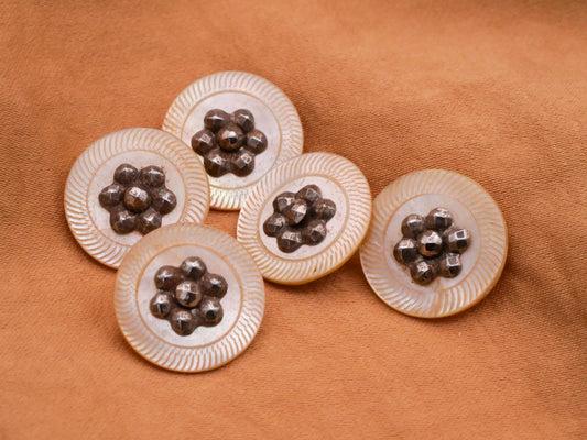 Mother of Pearl Steel Cut Antique Made in France Buttons 15mm
