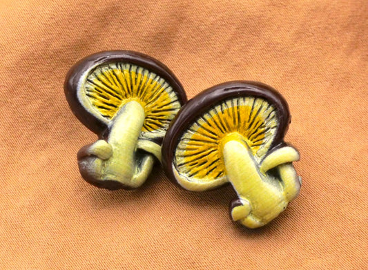Mushroom Earthy Brown Yellow Kitschy Pair of Buttons 19x20mm